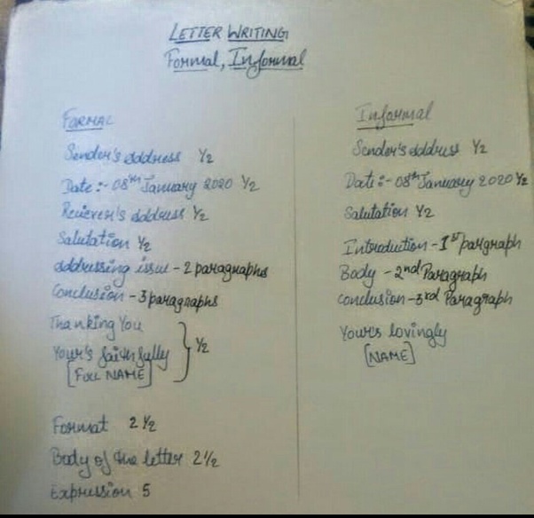 The correct format of letter writing, topics of letters and marking scheme are discussed here. What are the steps to write a short story? You have to learn basic english grammer topics like tenses. Write the letter in full block format (i.e., to the left). Formal letters is written to convey official and important messages to authorities, dignitaries, colleagues, seniors, etc instead of personal contacts in this article, you will get to know more about the rules of writing a formal letter.